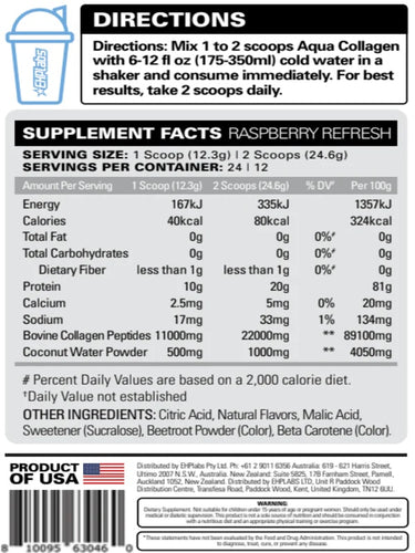 HYDROLYZED COLLAGEN PEPTIDES: Aqua Collagen contains 22,000mg of Bovine Collagen peptides per (2 scoop) serving. Aqua Collagen comprises Type I & Type III collagen peptides. Type I collagen peptides are found mainly in bone, skin and tendons. While Type III collagen peptides are found mainly in blood vessels, organs, skin & joints. Both types of collagen work synergistically together to support overall whole body health.